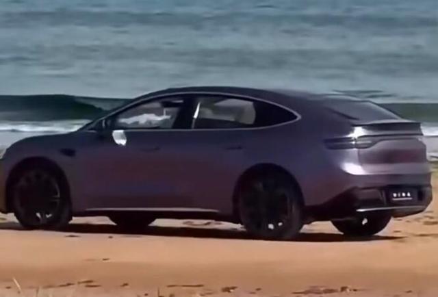 車身側面線條流暢,溜背式車頂設計賦予了車輛強烈的動感,無框車門和隱藏式門把手的運用,增添了車輛的未來科技感。尾部設計簡潔有力,貫穿式尾燈與前臉形成呼應,鴨尾造型的擾流板以及底部的黑色包圍,則進一步強化了車輛的運動定位。