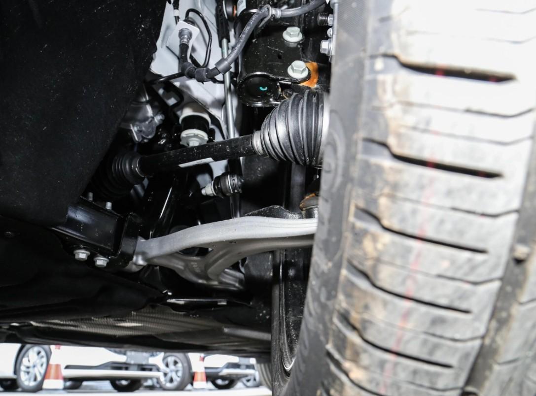 因此運動版采用了跨界造型,離地間隙更高,為了抬高車身,在鋁合金羊角部分,使用了大尺寸的設計,布置懸掛的控制臂時,可以向上移動,同時大面積的羊角可以讓控制臂分開布置,簡單來說就是連接點更自由,輪胎上下運動更趨于垂直,時刻保持不錯的抓地力。懸掛與車架通過四點式襯套連接,軟連接設計可以增加舒適度。