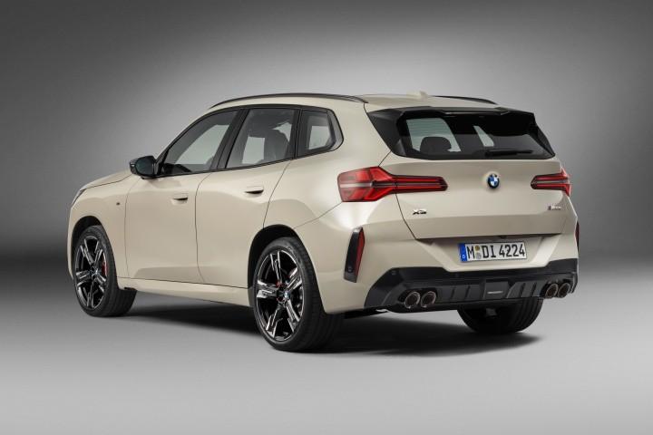 大改款 X3 車側(cè)輪廓更加凸顯長車頭的設(shè)計(jì),整體線條較現(xiàn)行車款更為方正,擁有前后外擴(kuò)的輪拱,同時(shí)搭配新世代車款慣用的平把式車門把手,車尾上方提供造型立體的尾翼,并朝后擋兩側(cè)延伸,透過「T-Shaped」LED 尾燈組搭配立體尾門線條,牌照的位置自尾門中央移至后保杠處,一般車型采隱藏式排氣管設(shè)計(jì),僅 M50 xDrive 提供雙邊雙出排氣尾管的性能化扮相。