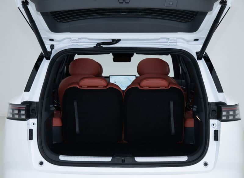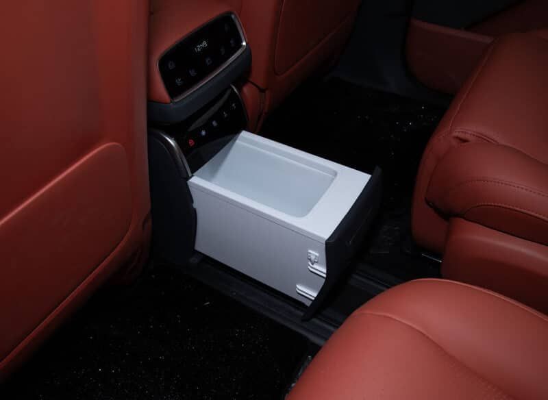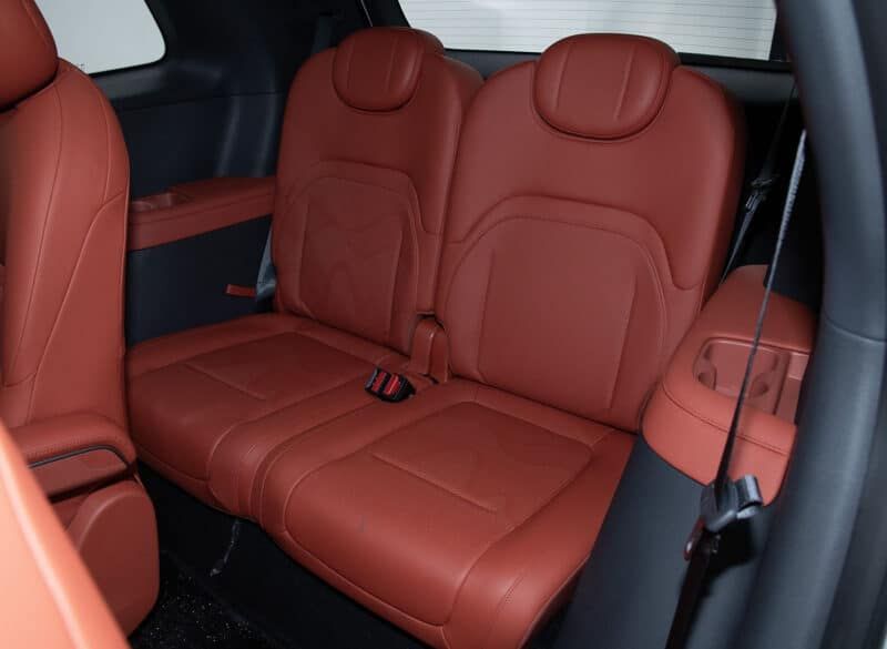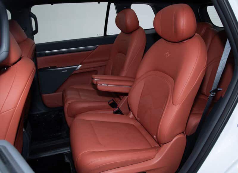 對(duì)于前排乘客來(lái)說(shuō),有一個(gè)“零重力”座椅,這意味著座椅可以傾斜到接近平坦的位置。前兩排座椅還具有加熱、通風(fēng)和按摩功能。位于中控臺(tái)后面的是一個(gè)冰箱。此外,前排座椅靠背上的折疊式小桌板和可從車頂折疊的 15.6 英寸娛樂(lè)屏幕,也顯得相對(duì)豪華。東風(fēng)聲稱第三排座椅臀部點(diǎn)到車頂?shù)木嚯x接近1000mm。第三排乘客還配有充電端口、閱讀燈和杯架。后備箱空間最大容積為783升。乘客可享受4.9平方米的全景天窗。