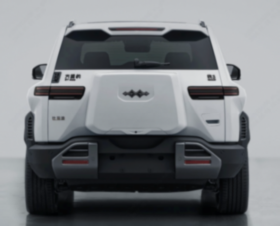 尾部設計則相對科幻,長條形的尾燈更具城市氣息,越野車常見的“小書包”也能看到,暫未知內部的用途。
