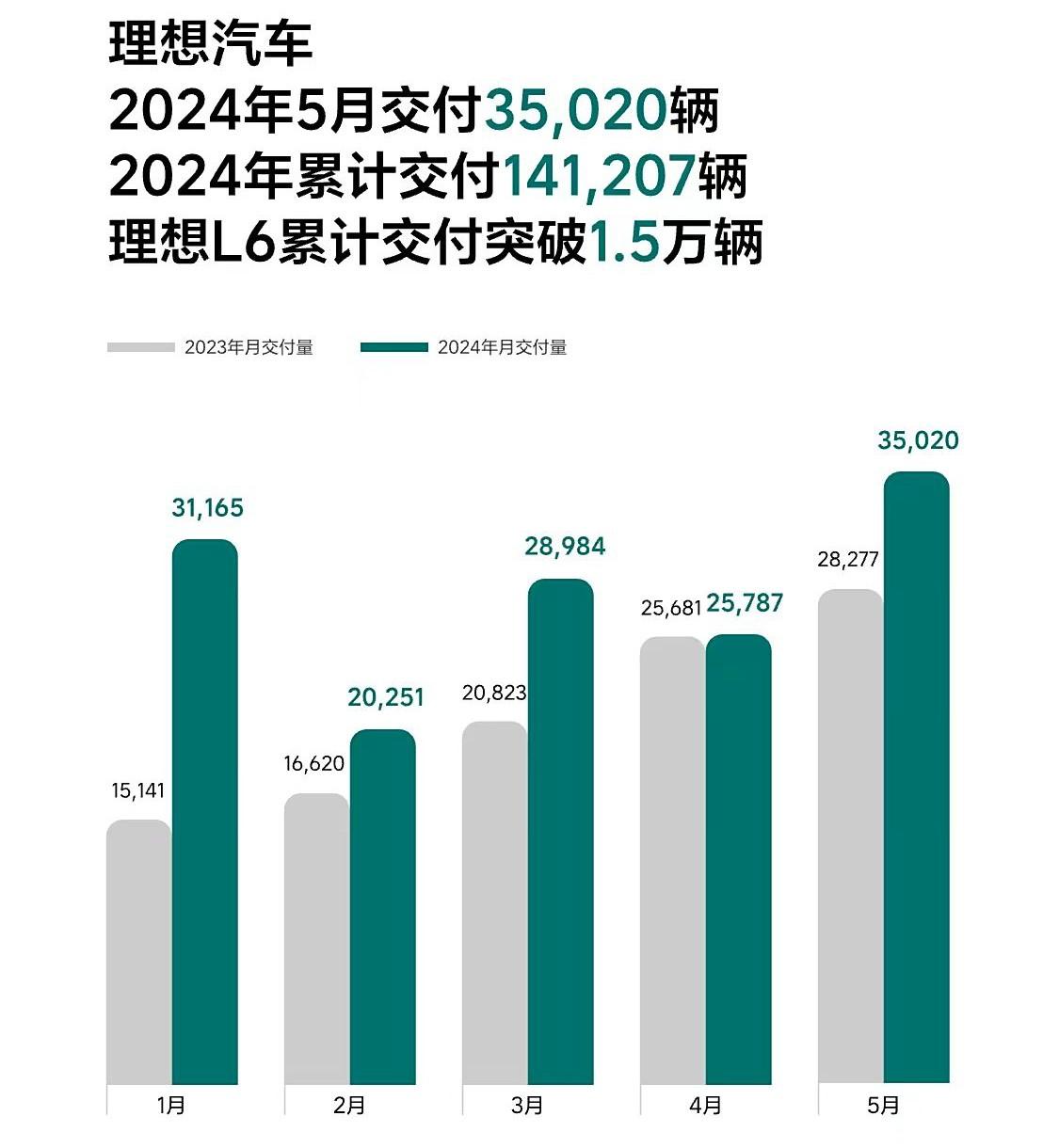 理想汽車也是本月第一個官宣銷量的品牌,在5月份共交付新車35020輛,同比增長了23.8%,在銷量上可以說是屢創新高,具備著極強的發展潛力。