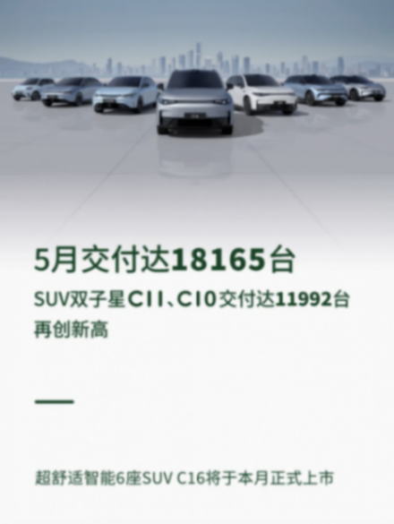 首先是零跑汽車,有著價格屠夫之稱的它,在最近這幾年也有著極佳的表現,尤其是前段時間推出更親民的零跑C11以后,在5月份的交付量也達到了18165輛,其中C11、C10兩款SUV產品的交付量為11992輛,這樣的成績表現也算是相當優秀。