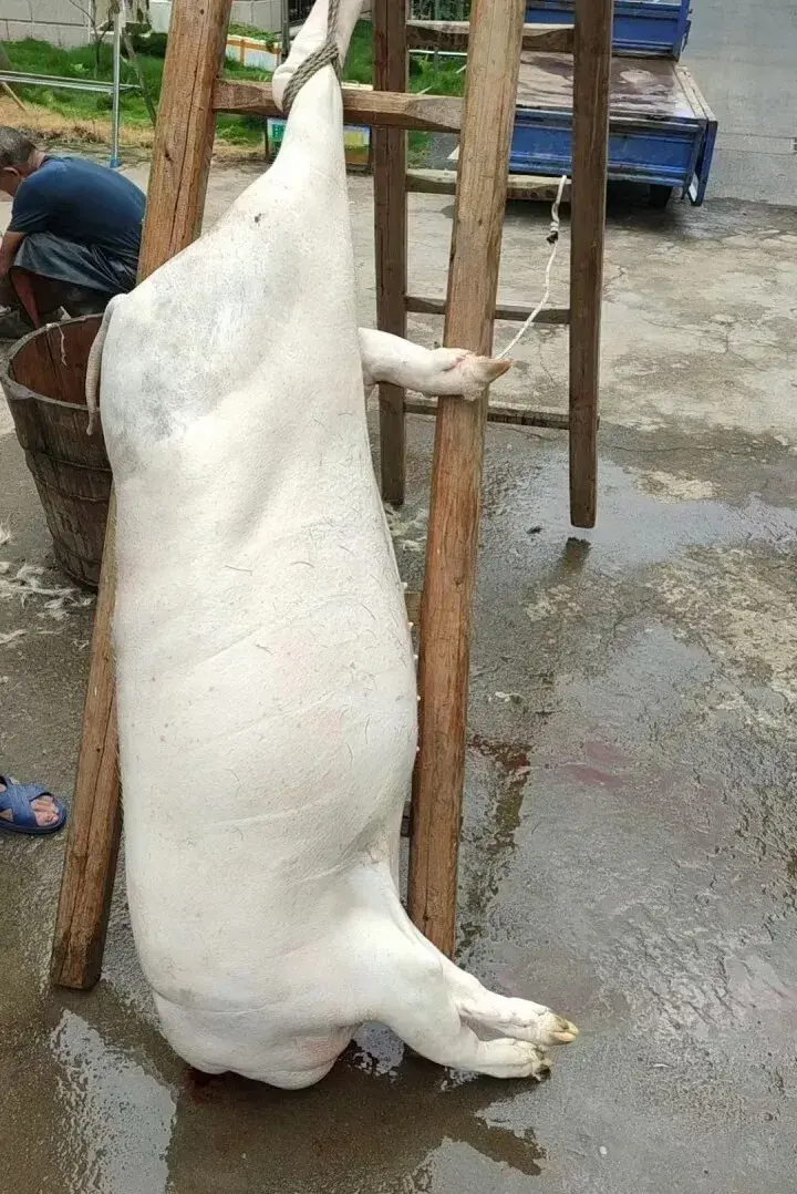 其次,毛重是220斤,但最后獲得的凈肉是140多斤。按整豬計(jì)算,每斤豬肉的價(jià)格是10.45元;按凈肉計(jì)算,每斤肉的價(jià)格是18.57元。