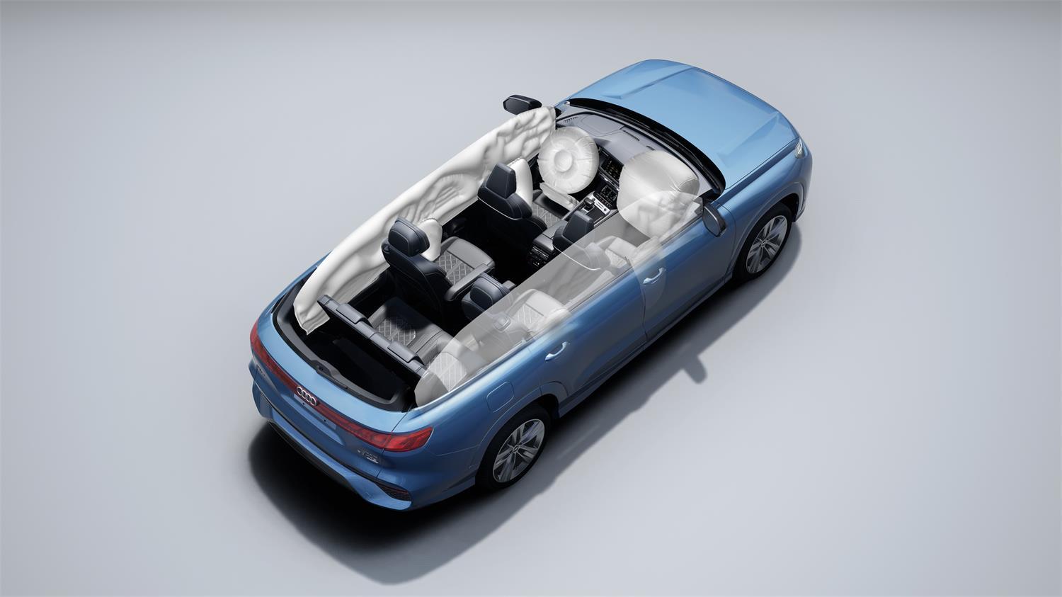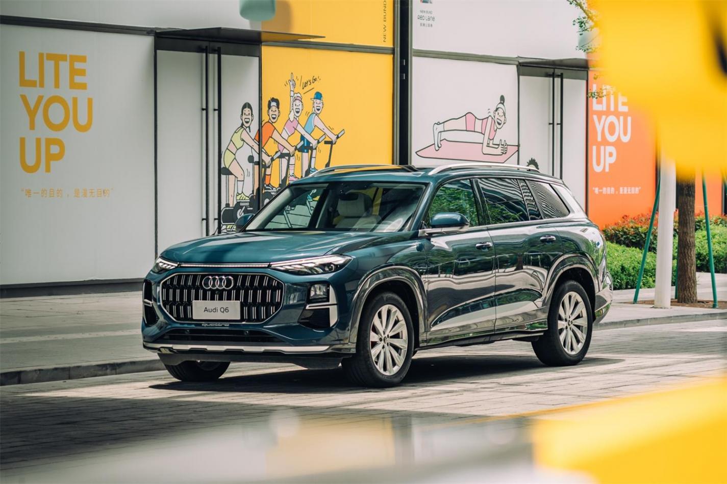 Q6在設計上比前兩者更新,它的前臉沒有采用Q7那種扁平化風格,而是通過對前臉的縱向拉伸,讓家族標志性的六邊形格柵更圓潤,配合全系標配的貫通式流光燈,以及帶有自適應遠近光的矩陣式LED燈組,讓它成為了整個家族體系中獨樹一幟的存在。同時這種設計也引領了奧迪未來的設計,在今年北京車展上,全新奧迪Q6L e-tron亮相,我們可以看到他們之間相似的設計語言。
