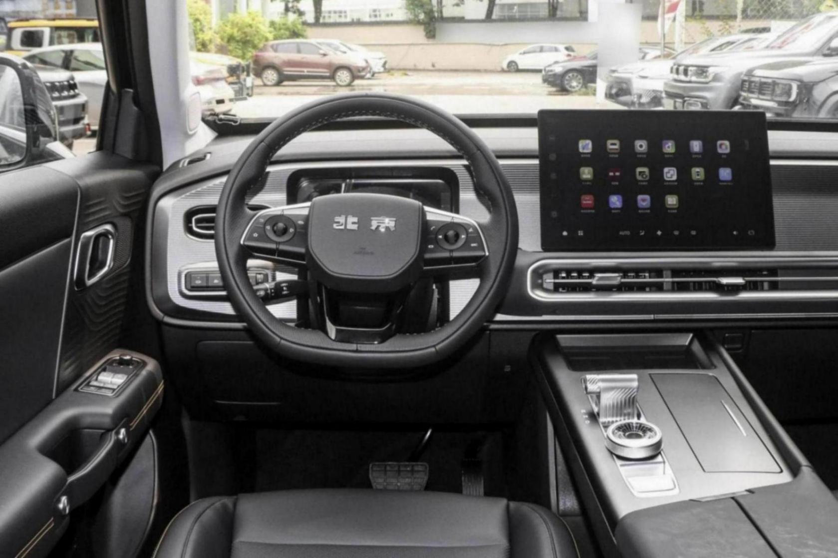 相較于外觀硬派的方盒子造型,北京BJ30的內飾設計就要相對優雅簡約一些,10.25英寸的液晶屏和14.6英寸的中控屏采用上下錯層布局,優化觀感之余同樣對彰顯科技感有所幫助。比較精致的是,北京BJ30采用不同于傳統越野車的游艇式大推桿,反而采用流行于新能源汽車身上的水晶圓形換擋機構,加之局部拉絲銀色鍍鉻的裝點,整體質感不俗。
