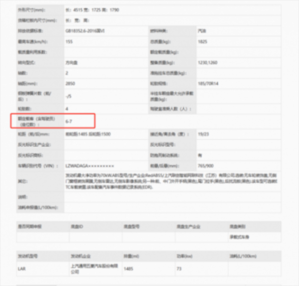 動力部分,此次申報的燃油版車型搭載的是一臺型號為LARDE 1.5L自然吸氣發動機,最大功率73千瓦;純電版車型搭載的電機最大功率為75千瓦,最高車速為135公里每小時,匹配的是磷酸鐵鋰電池。