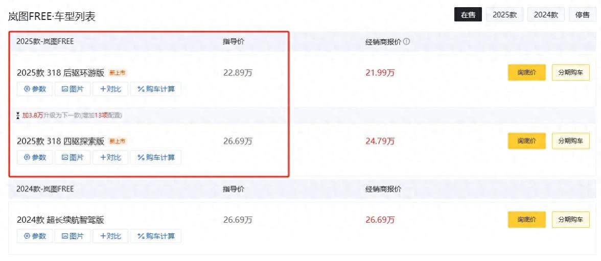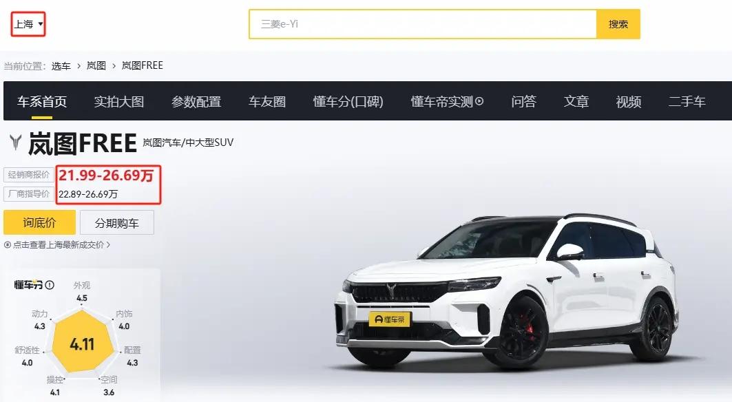 嵐圖FREE這款C級豪華SUV采取了降價增配的銷售策略,隨著新嵐圖FREE318于6月份上市,其售價持續下降,指導價從22.89萬起。官方還推出了高達29294元的限時購車權益,活動截止日期為7月31日。在各地區的終端市場上,新車上市時也伴隨著一定程度的優惠,比如在上海地區,實際售價為21.99萬起??紤]到官方推出的限時優惠,這款車的起售價將低至20萬元以下,在當前市場條件下,優惠后的售價仍相當有吸引力。