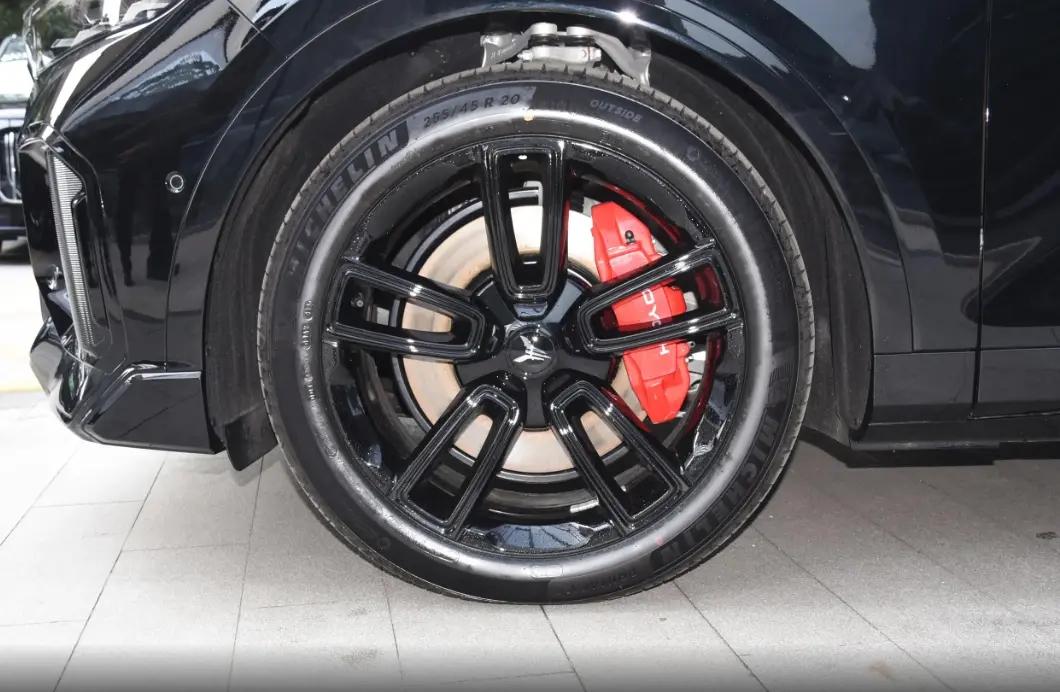 新車的外觀顏色選項除了黑色外,還包括灰色、白色和綠色。側面配備黑色鋁合金輪轂和紅色剎車卡鉗,結合俯沖的車身姿態,展現出年輕運動的風格。該車是一款定位為中大型SUV,車身長度為4905毫米,軸距為2960毫米。前后均使用規格為255/45 R20的米其林輪胎,扁平比為45,旨在注重操控性能的同時兼顧一定的舒適度,單條輪胎的售價約為1600元。尾部設計采用箭羽式尾燈,配合上翹的頂翼和豐滿的輪廓,展現出時尚動感的氛圍。