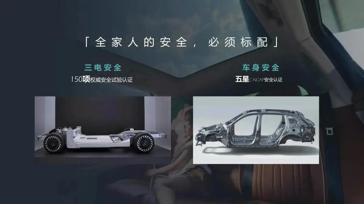 新車獲得了五星CNCAI安全認證,搭載的三電系統也通過了150項權威安全試驗認證。在核心電池包的兩側加入了抗壓性能達到1500Mpa的熱成型鋼,核心位置使用了抗壓性能達到2000Mpa的熱成型鋼。高強度鋼占比75%,整車扭轉剛度達到39300N·m/deg,整車的防護性能相當不錯,挺讓人放心的。