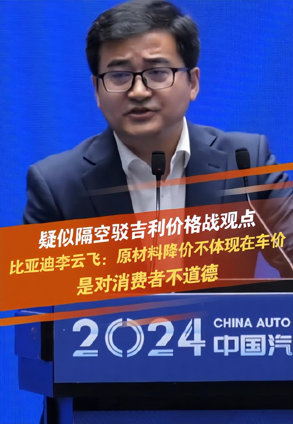 李云飛主要提出:兩年前電池等原材料價格上漲的時候,我們車企都在漲價。現在電池原材料價格暴跌,規模也起來了,不能漲價的時候因為原材料,降價的時候沒有把價格體現在車價上,捫心自問,這是對消費者的不道德。要始終致力于提升消費者體驗。汽車的啟動電瓶壽命只有兩三年,比亞迪率先采用12V的磷酸鐵鋰電池,雖然成本增加,但電池壽命與整車同步,為消費者解決痛點問題。企業應根據自身實力和市場情況,量力而行地參與價格戰,就像打牌,有人把牌打出來,能跟就跟跟不了就過,不要置氣掀桌子,可以參與下一輪。