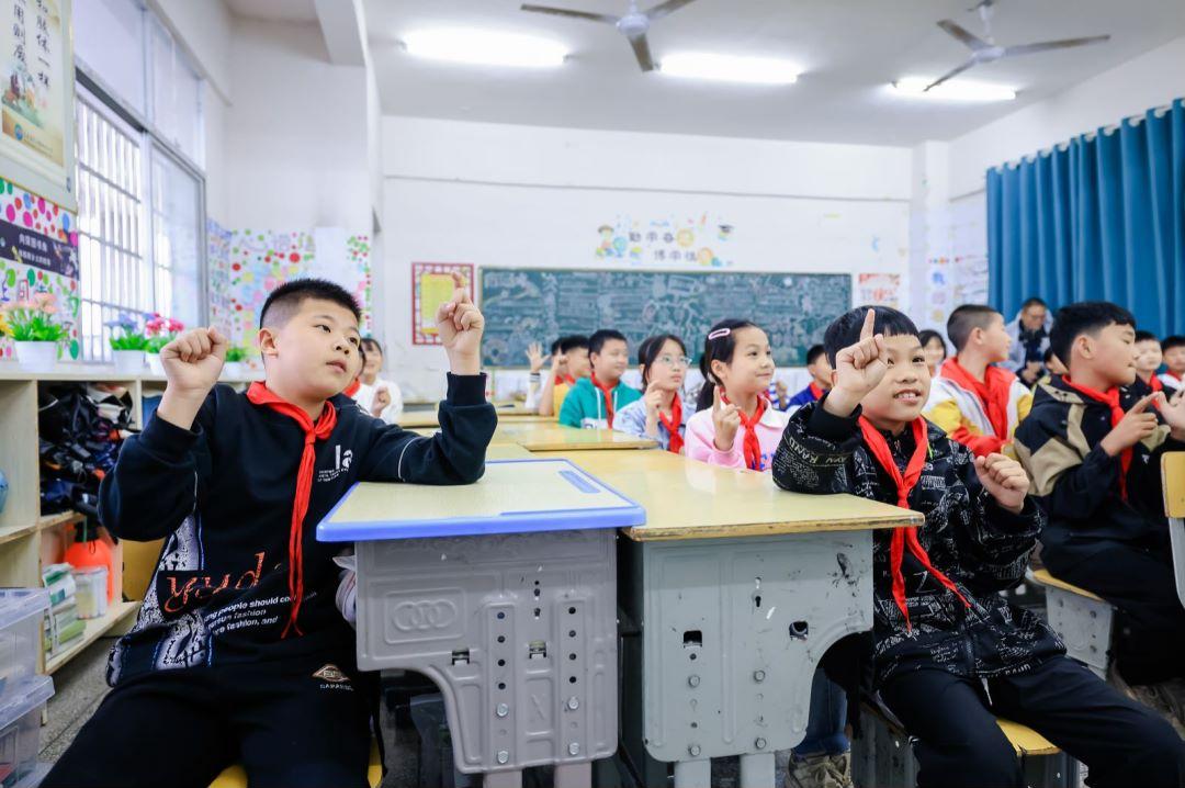 既然是在湘西,自然少不了民族特色的展示。孩子們身著鮮艷的苗族服飾,銀飾叮當作響,當音樂響起,是一段輕快而又富有節(jié)奏感的苗族舞蹈裊裊而來;隨后,身著武術服的孩子們,站成了整齊的隊列,準備展示他們勤學苦練的成果。他們身形矯健,拳腳有力,展現(xiàn)了中華武術的剛柔并濟。更有趣的是,志愿者與孩子們一起學習苗族歌曲,孩子們化身老師教志愿者學習苗族歌詞以及如何轉調(diào),大家仿佛都能感受到那份跨越語言界限的溫暖與親近。放學鈴聲響起,志愿者們化身成守護者的角色,與孩子們手牽手,踏上了回家的路。