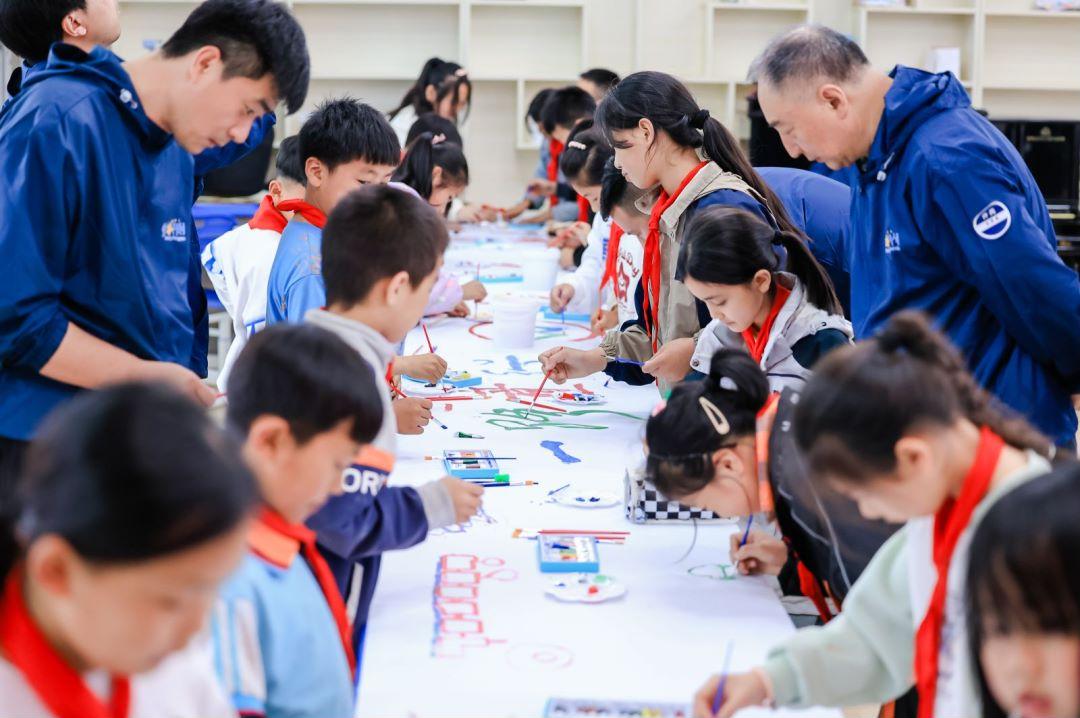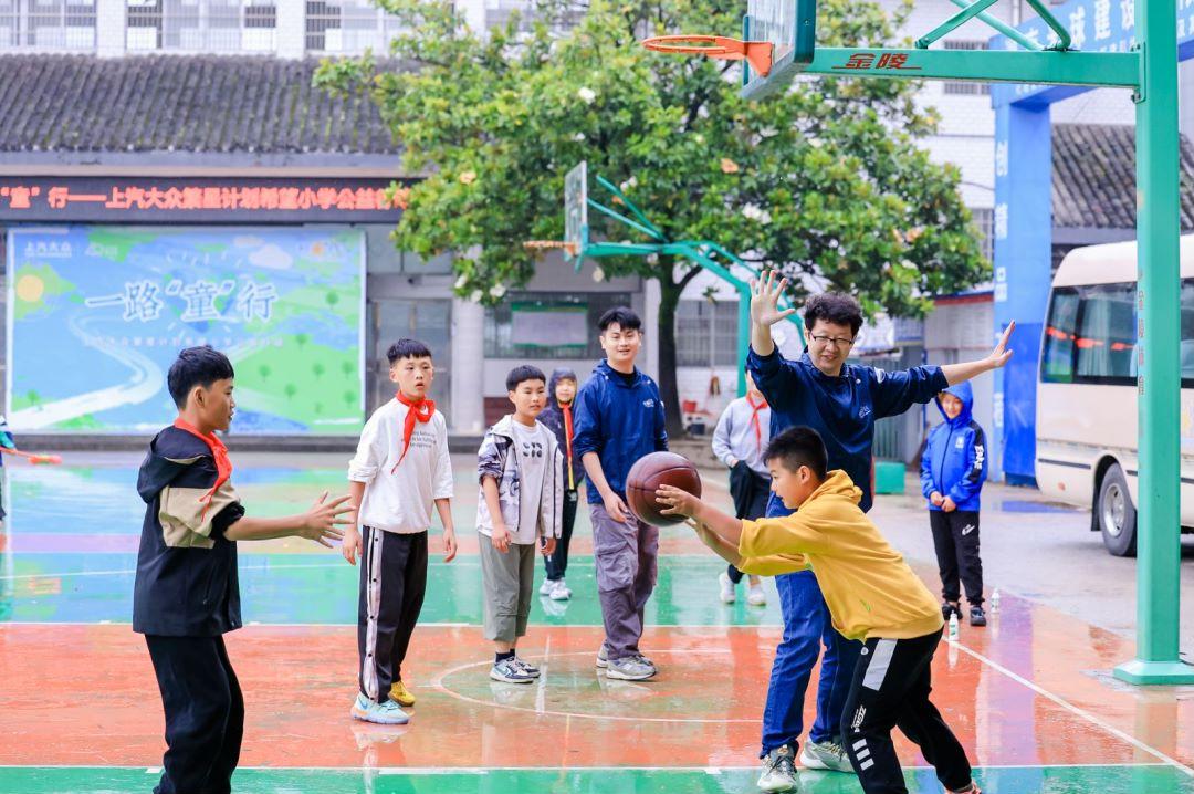 志愿者先與學校籃球隊的孩子們展開了一場別開生面的籃球友誼賽,隨后,大家聚在一起,拿起畫筆,在長長的橫幅上共同創(chuàng)作,孩子們的奇思妙想躍然布上,一幅色彩斑斕的畫卷記錄下了這次難忘的相聚。