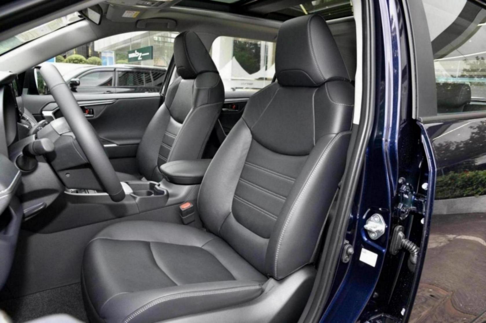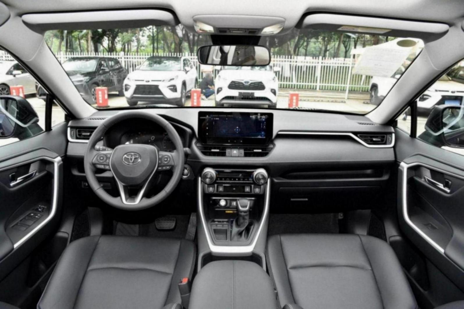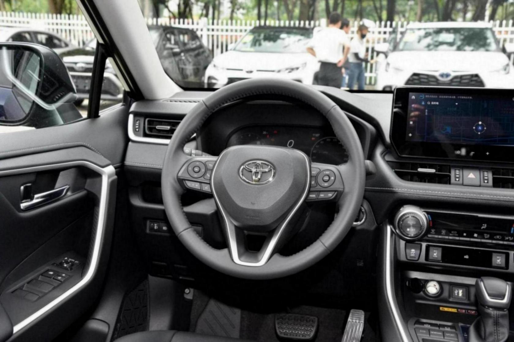 來到車內,如它的外觀一樣,豐田RAV4榮放的中控區域也是采用了大量的平直線條來修飾,輔以鍍鉻飾條的點綴,帶來的觀感既簡潔又大氣,在用料上也是以皮質材料為主,整體的質感還算不錯。在科技感方面,該車配備了12.3英寸液晶儀表和10.25英寸的懸浮式中控屏,屏幕內自帶CarPlay、HiCar等互聯方式,并支持車聯網、車載KTV、4G網絡和OTA升級等功能,在功能性方面算是做到了同級別車型的主流水準。