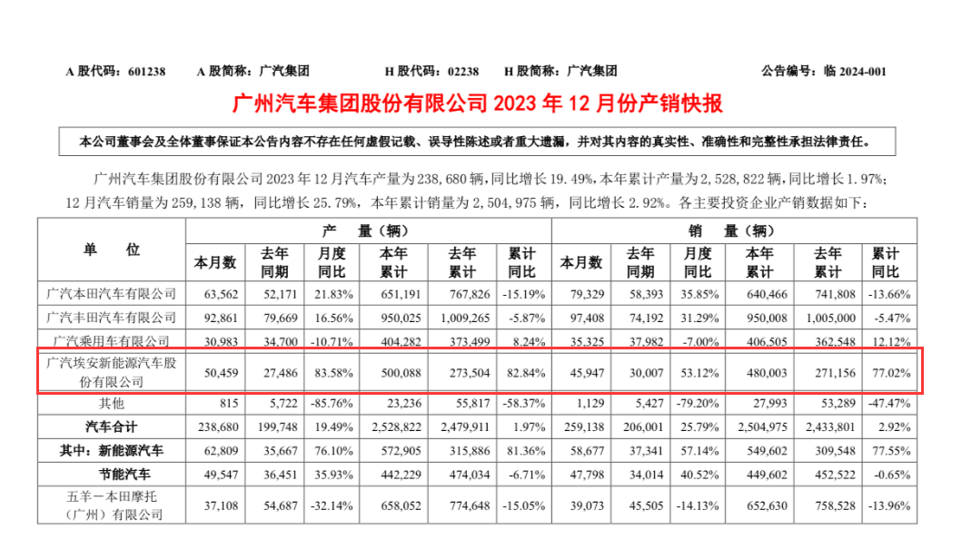 但是,到了2023年,廣汽埃安的年度銷量已經達到了480003臺,接近50萬臺。