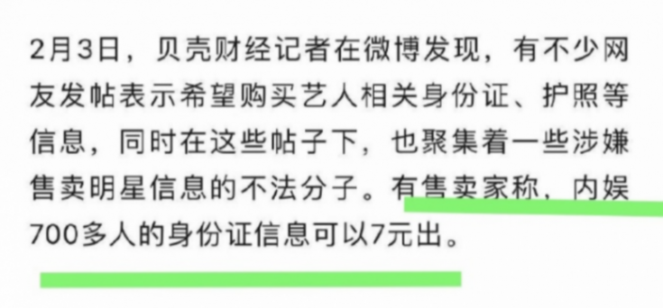事發之后,不由得讓人思考,為什么有人可以冒充本人預訂航班機票?隨后,網上爆出某航空公司可以免驗證訂票,并且公開售賣明星的信息。甚至7元打包售出700多人明星的身份證信息,毫無隱私可言,讓人不寒而栗。