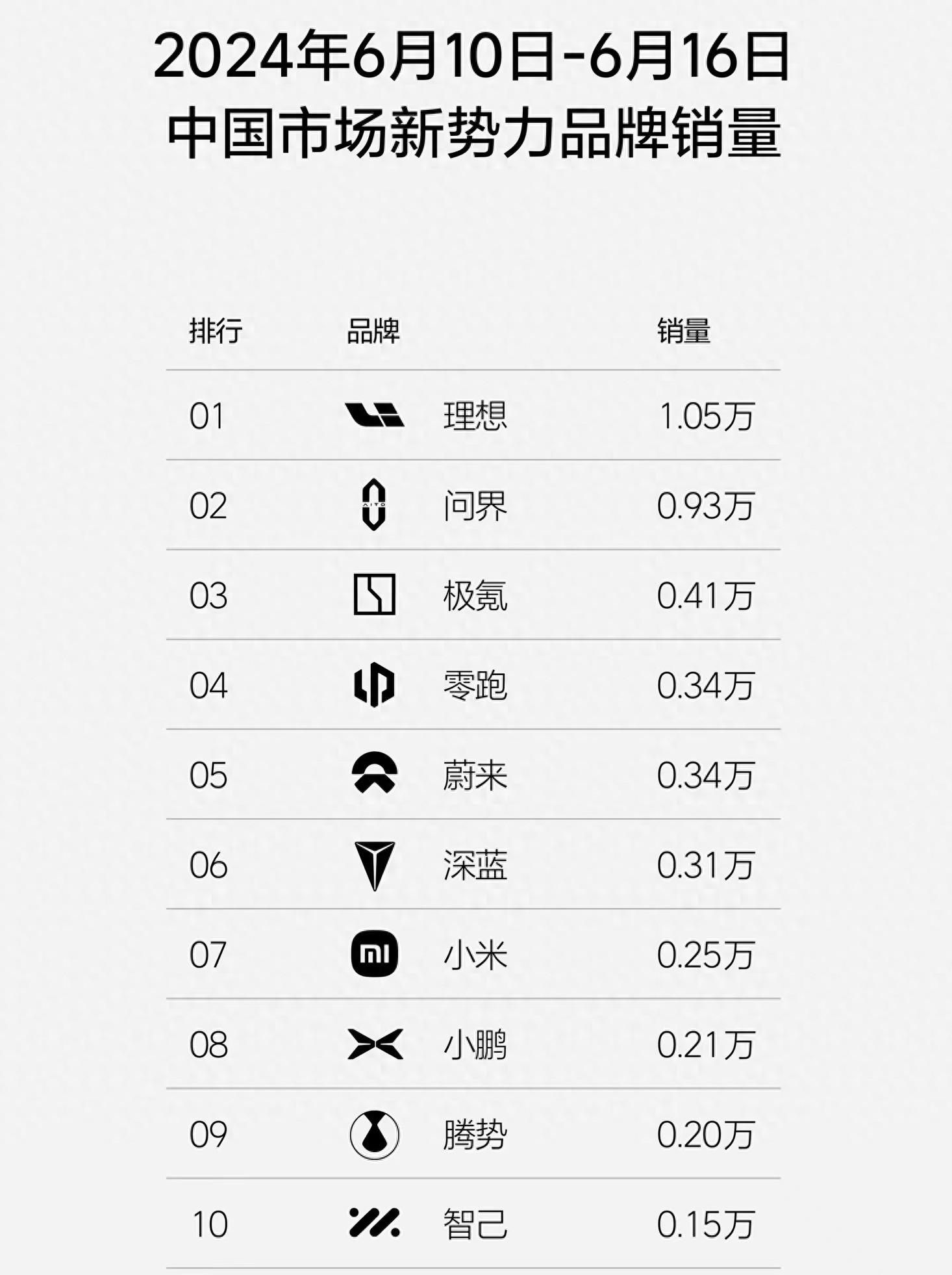 極氪汽車上一周銷量0.41萬輛排名第三,6月兩周銷量都比較接近,表現較為穩定。緊隨其后的是零跑、蔚來和深藍,周交付量均在0.31萬輛以上,排名與上周保持一致。