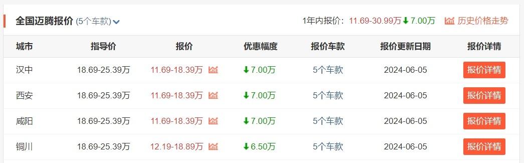 關注汽車市場的朋友就一定知道,大眾邁騰在6月將迎來全新車型的上市,那如此一來,老款大眾邁騰車系的優(yōu)惠勢必也就會更大了。據(jù)我們所了解到的信息來看,邁騰目前在漢中等部分地區(qū)擁有全國最高的7萬元優(yōu)惠,而且是全系車型都可享,那這對于目前急需要買車的消費者來說無疑是一個福音,咱們想買新款車型的朋友可以再緩緩了。