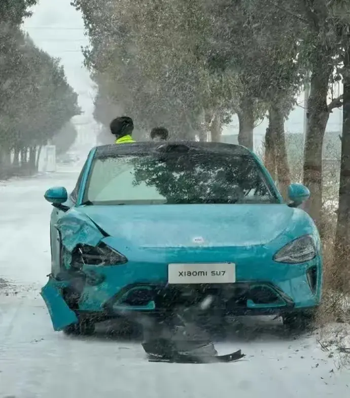 究竟是路滑還是熄火?小米SU7首撞曝光,大燈損壞較慘不忍睹!