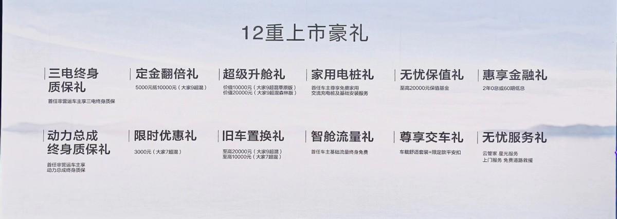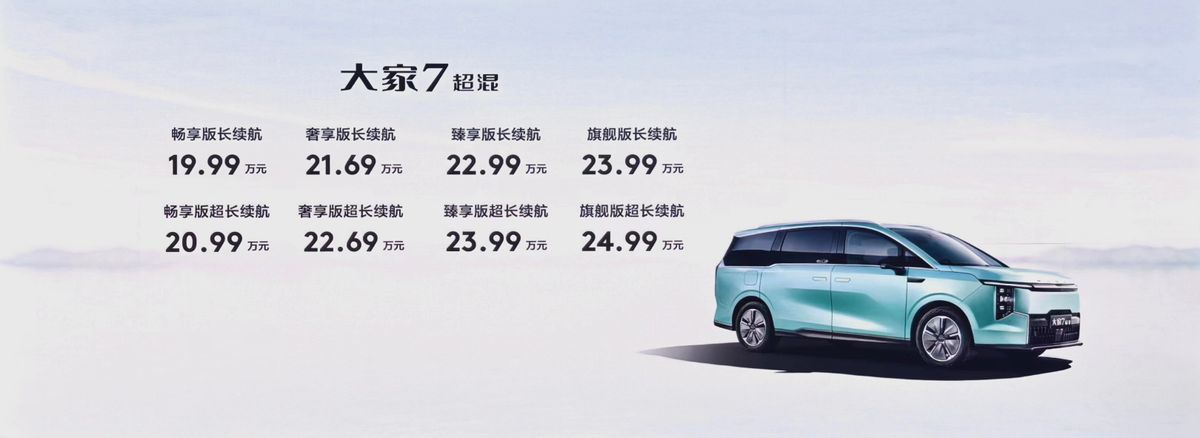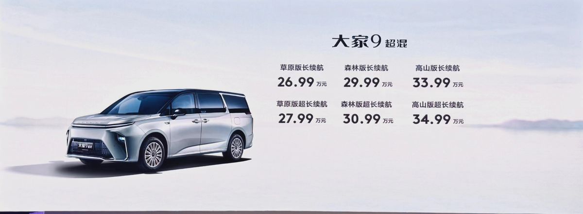 6月7日,上汽大通旗下兩款MPV,大家7超混和大家9超混正式迎來上市,其中大家7超混共推出8款車型,售價區間在19.99萬元-24.99萬元,大家9超混共推出6款車型,售價區間在26.99萬元-34.99萬元。此外,官方還在現場公布了12項上市禮遇,包括三電終身質保、動力總成終身質保以及限時現金優惠政策等。