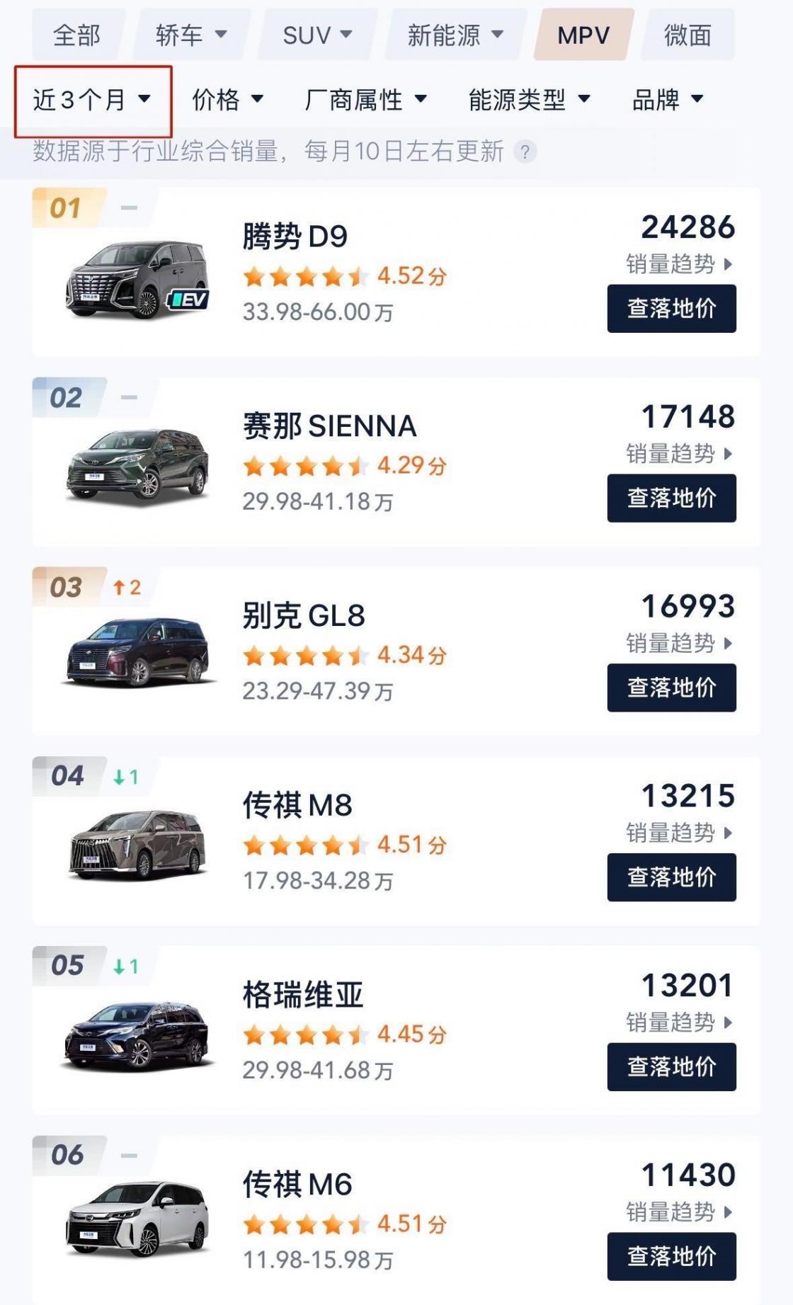 榜單向前翻,霸榜的仍是月銷1萬+騰勢D9,另外豐田塞納、別克GL8、傳祺M8、和格瑞維亞、傳祺M6等則分食了較多的MPV份額。對于上汽大通來說,講好MPV的用戶故事、持續打造技術護城河固然重要,但如何憑借質價比迅速實現對用戶心智的占領仍然是個亟需解決的命題。