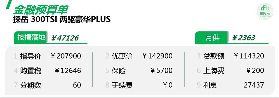 探岳去年優(yōu)惠4萬左右,現(xiàn)在已經(jīng)有5萬多優(yōu)惠了,如果客戶做60期車貸的話,則能達(dá)到6萬多。外面的行情在不做分期的情況下已經(jīng)可以干到6萬多優(yōu)惠了。