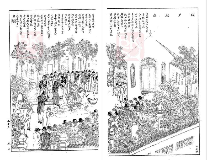 田英繪《戕尸驗(yàn)病》,《點(diǎn)石齋畫報》第一百三十六期,1887年。