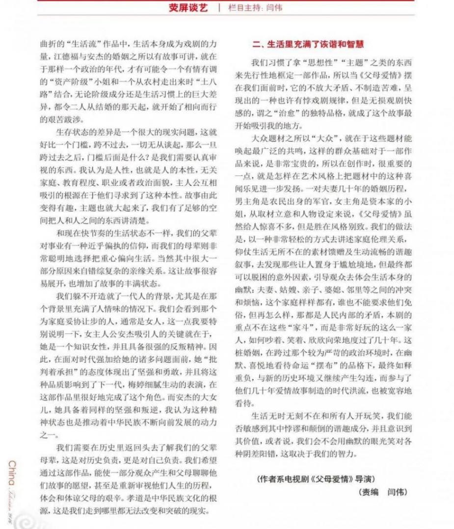 附:《中國電視》 2016年第1期 《審視父輩的信仰與情懷——電視劇<父母愛情>導演闡述》(作者:孔笙)