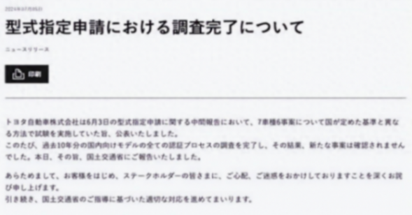 (豐田稱(chēng)已完成對(duì)過(guò)去10年間所有日本國(guó)產(chǎn)車(chē)型認(rèn)證流程的調(diào)查)