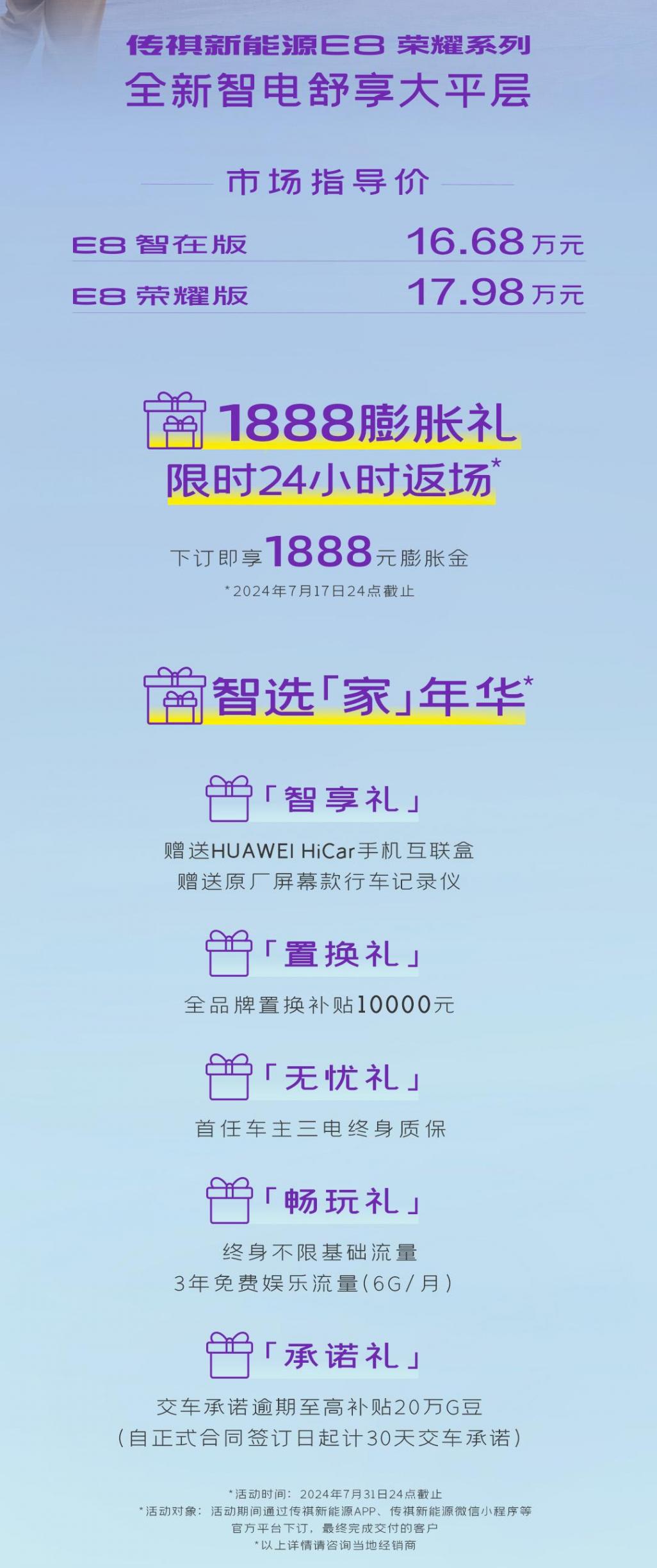 | 傳祺新能源E8榮耀系列 官方指導售價 | |