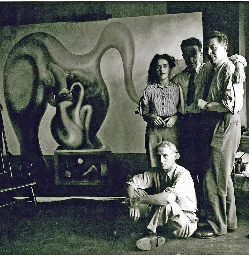 1942年秋天,馬克斯·恩斯特(坐)與利奧諾拉·卡林頓、馬塞爾·杜尚和安德烈·布勒東在紐約。
