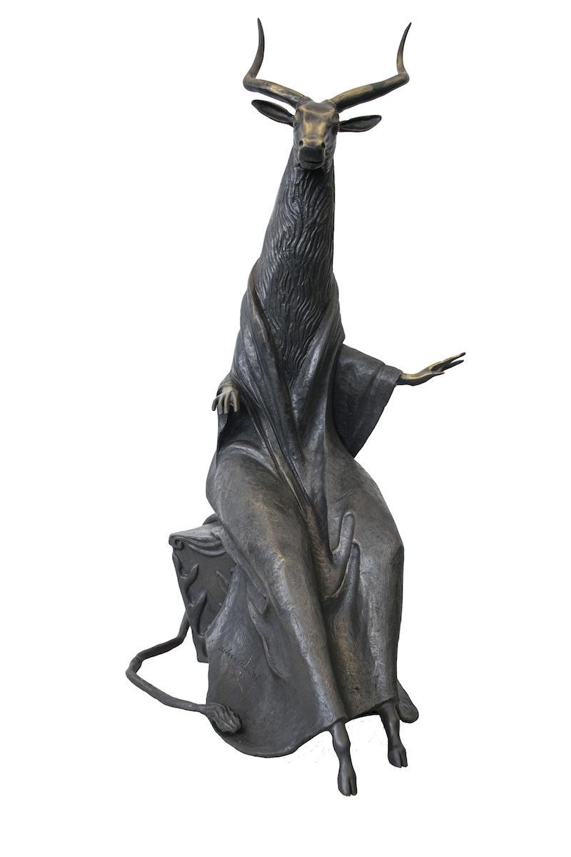 卡林頓的雕塑《老馬格達(dá)萊娜》(Old Magdalena)全身覆蓋著毛發(fā),像一個(gè)奇異的哨兵。她充滿激情的青銅雕像《牛頭怪之女》是一頭長(zhǎng)角獸體,身材纖細(xì)——它光滑、優(yōu)雅,不是技術(shù)上的突破,但其純粹的怪異感和最重要的信念令人著迷,它是真實(shí)的。這些面孔肯定也同樣來(lái)自她英國(guó)家鄉(xiāng)記憶中的怪獸和綠人。這些是她在夢(mèng)中看到的面孔,每一個(gè)都不同,每一個(gè)都熟悉。