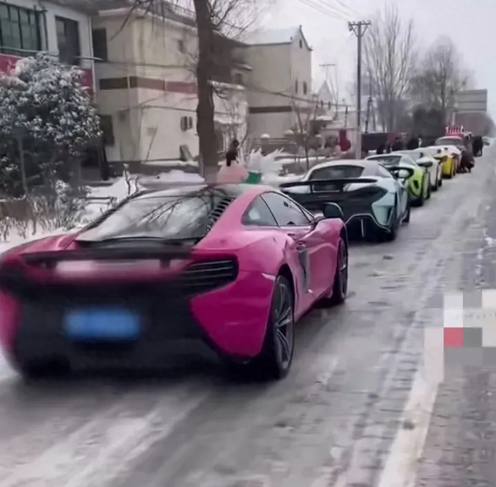 更讓人驚訝地是,這些陪嫁不是女子父母給的,都是女子白手起家創(chuàng)業(yè)賺來的,妥妥的女強(qiáng)人、成功人士。迎親車隊也不一般,清一色跑車。新娘子身穿秀禾服,氣質(zhì)出眾、美麗動人。