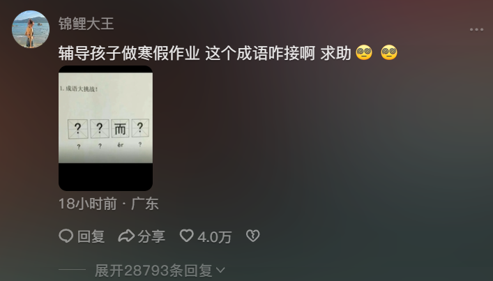 一網友靈魂發問:“現在家長也有寒假作業了嗎”
