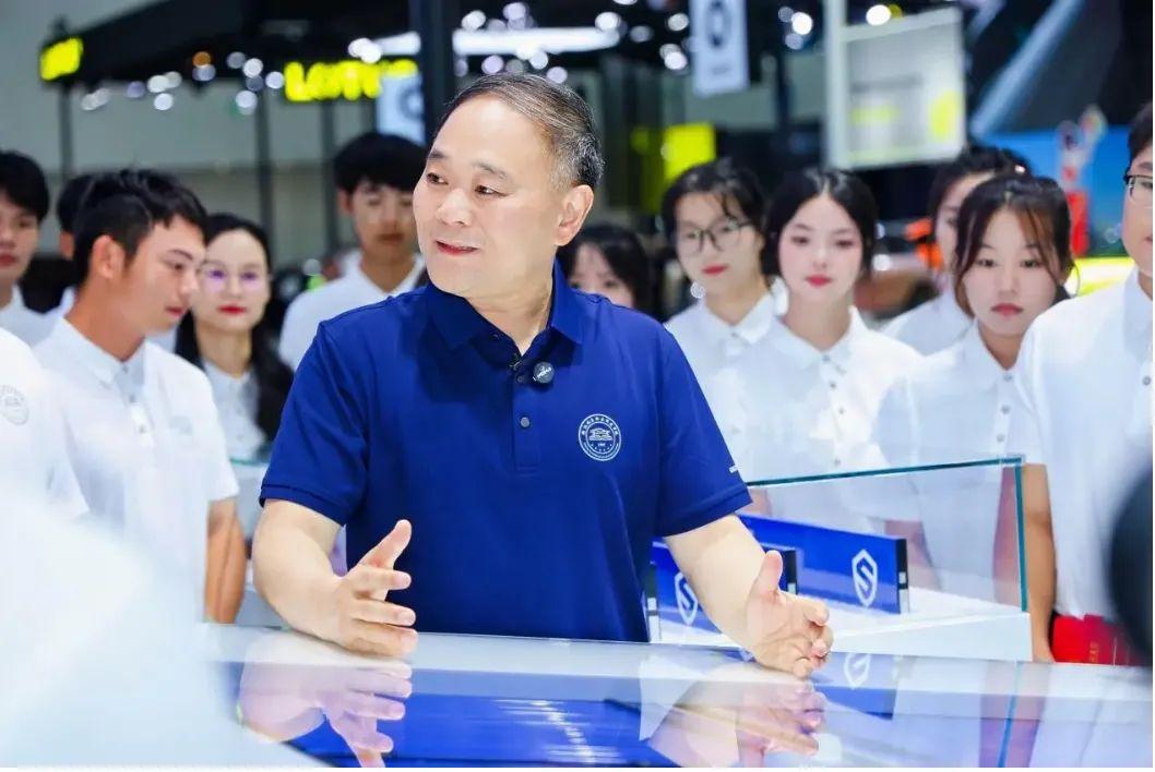 吉利控股集團董事長李書福帶領浙江汽車職業技術學院的同學們觀摩了臺州國際車展吉利控股集團品牌專館,就人生價值觀,人才教育、企業文化、汽車前沿技術等話題,與同學們分享交流,為同學們帶來了一堂別開生面的“書福公開課”。