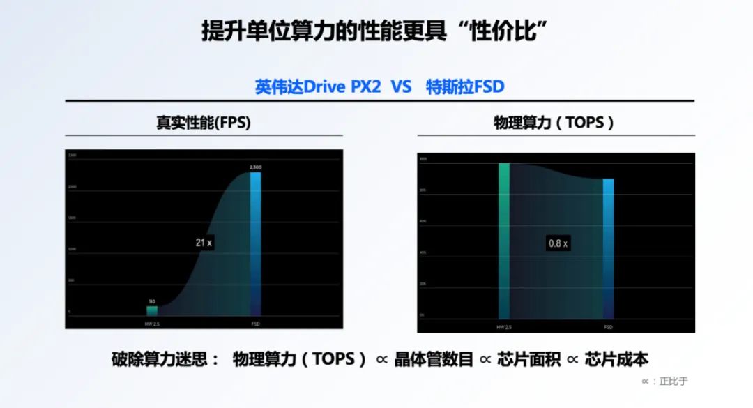 算力下降了,但在以FPS為度量指標的真實性能上,HW3.0相較于HW2.5提升了足足21倍!