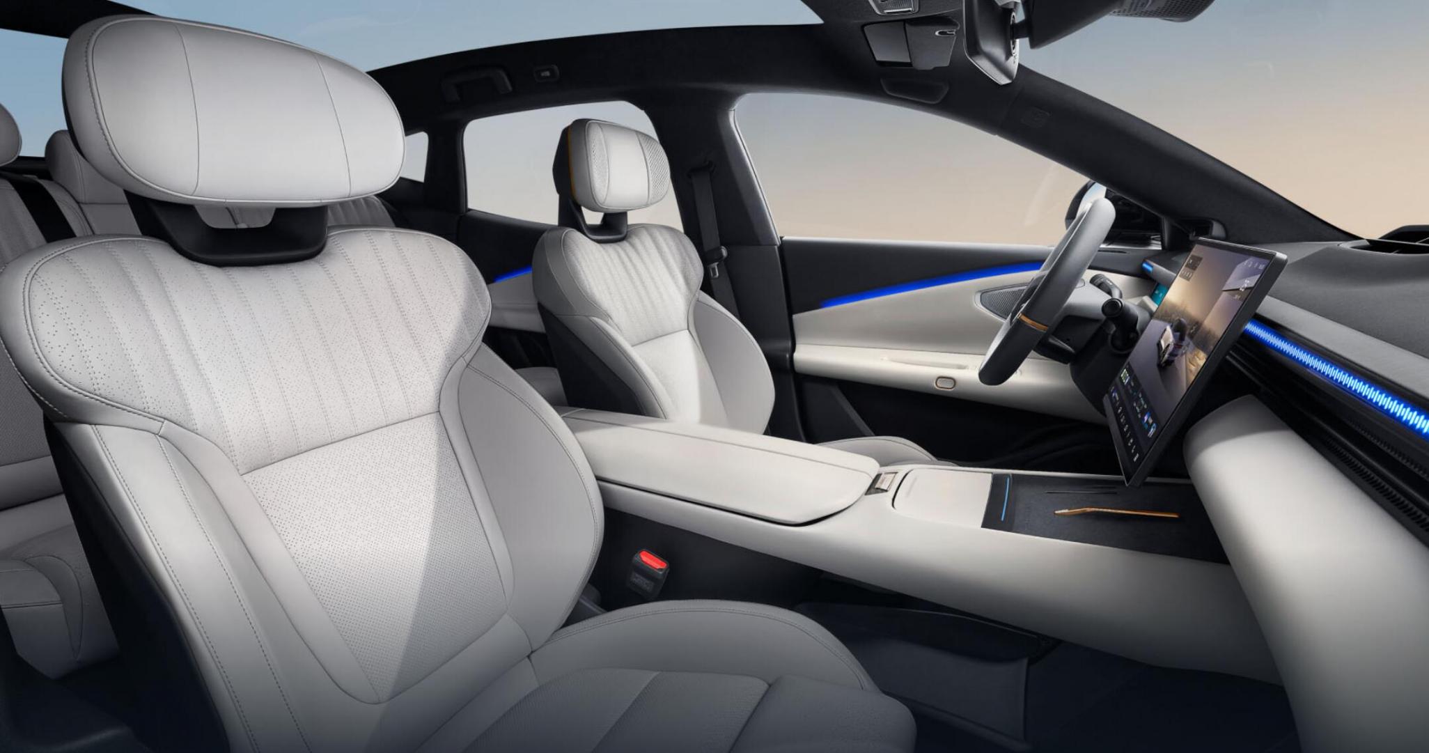 小米SU7:內(nèi)飾設計以環(huán)繞式座艙為主導,整體空間以反弧形的曲面為主,采用鏤空細節(jié)和懸浮儀表臺,配備7.1英寸全液晶儀表盤+16.1英寸懸浮式中控屏,內(nèi)置高通驍龍8295芯片,搭載小米澎湃OS操作系統(tǒng),支持多種互聯(lián)功能。