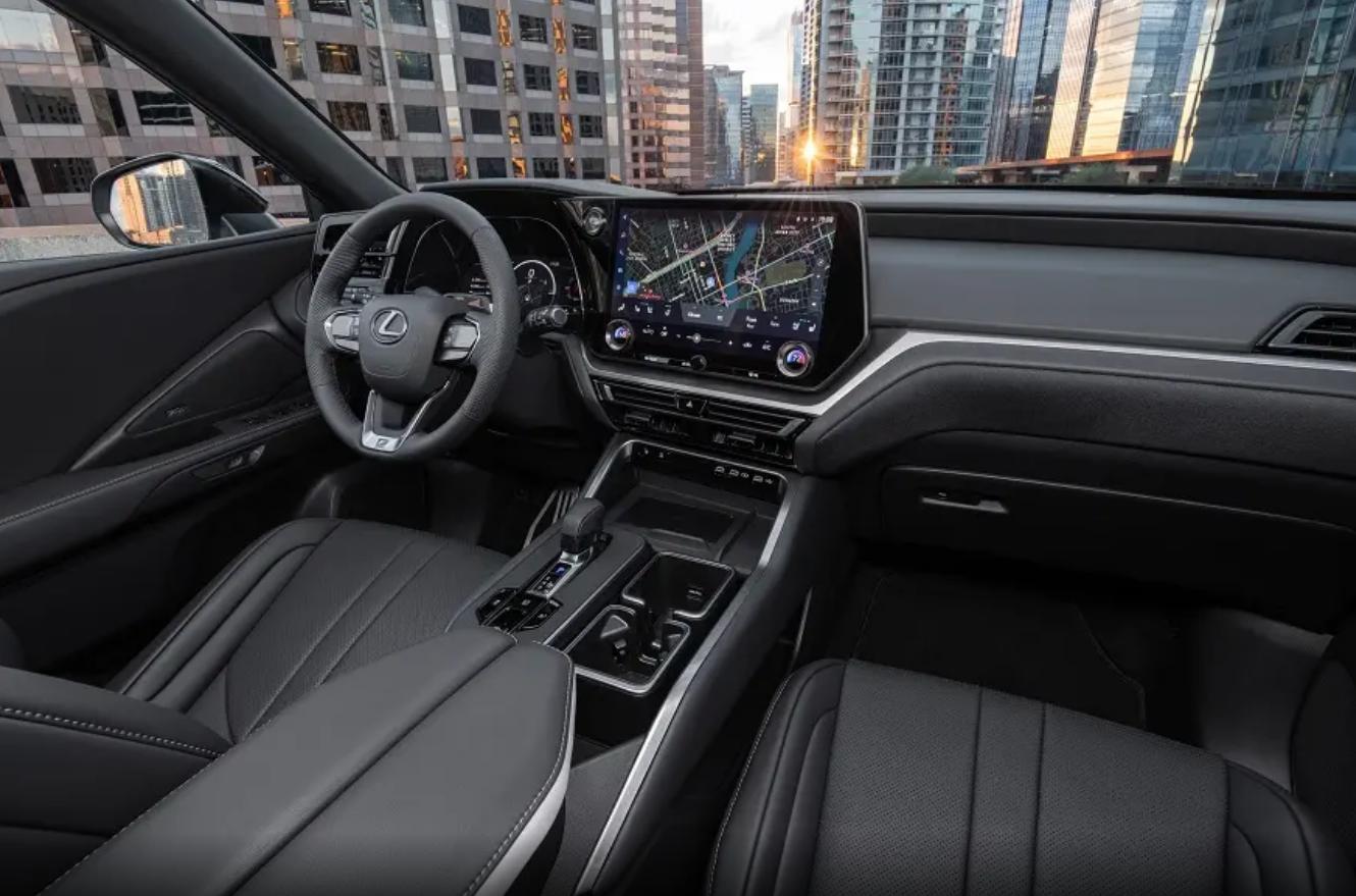 雷克薩斯 TX在內飾方面,屬于簡約,規整的風格,沒有什么花哨之處,中控屏幕采用懸浮式設計,屏幕的尺寸達到了14英寸,中控屏幕下方還提供無線充電面板,座椅還增加了F SPORT字母刺繡,整體設計,符合自身的定位。