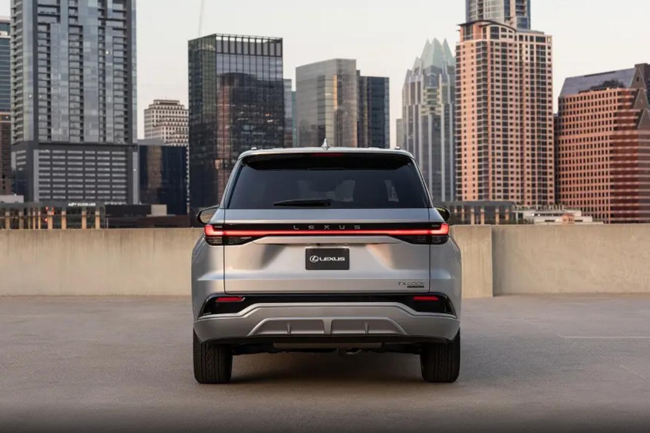 雷克薩斯 TX 定位中大型SUV,整車的體量感還是相當足的,500h F SPORT運動版輪轂采用灰色樹杈形狀,力量感十足,車尾設計的簡約,規整,尾燈采用最近幾年較為流行的貫穿式設計,尾燈上方還提供品牌字母LOGO,車身尺寸方面,長寬高分別為4890*1920*1695毫米,軸距為2850毫米。