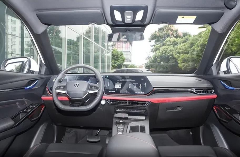 外觀方面,前臉配備了超大尺寸的無邊界進(jìn)氣格柵,長(zhǎng)安標(biāo)志性的“V形”LOGO鑲嵌其中,并在右上方設(shè)計(jì)有S標(biāo)識(shí)裝飾,搭配前唇上方啞光紅的配色和樣式時(shí)尚動(dòng)感前大燈組,營(yíng)造出充滿了現(xiàn)代感和時(shí)尚氣息的視覺效果。底部左右兩側(cè)的進(jìn)氣口開口大,強(qiáng)調(diào)了車頭的運(yùn)動(dòng)氣息。