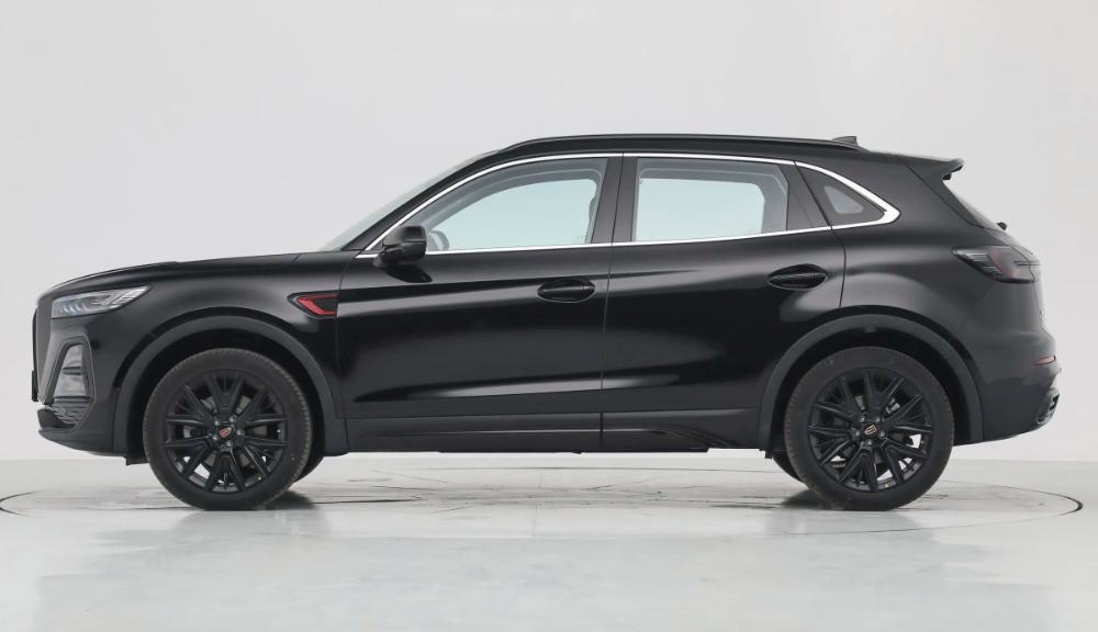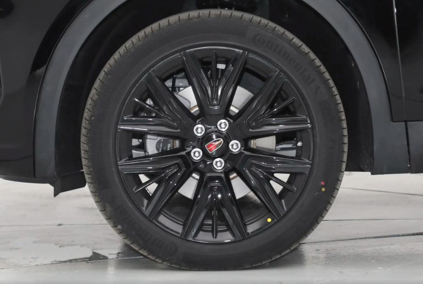 來到車身側(cè)面,2025款紅旗HS5在側(cè)身設(shè)計上較為簡單,車身的線條也是較為飽滿,而且車頂還帶有一些溜背式的設(shè)計語言,其中玄影版車型在側(cè)身設(shè)計上,均采用了黑色的涂裝處理,其中也包括輪轂,但是紅旗那標志性的側(cè)旗標在這臺車身上也沒有缺席,而且部分車型的側(cè)旗標還擁有迎賓功能,當(dāng)車輛啟動的時候,側(cè)旗標會在地上投影出一個“展翼”的光標,由此我們不難看出,2025款紅旗HS5的整體美觀程度還是表現(xiàn)不錯的。