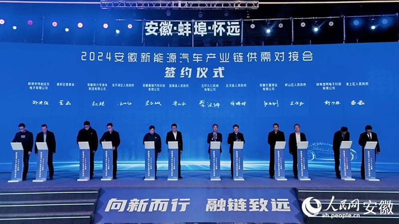 安徽新能源汽車產業鏈供需對接會上進行項目簽約儀式。人民網記者 周坤攝