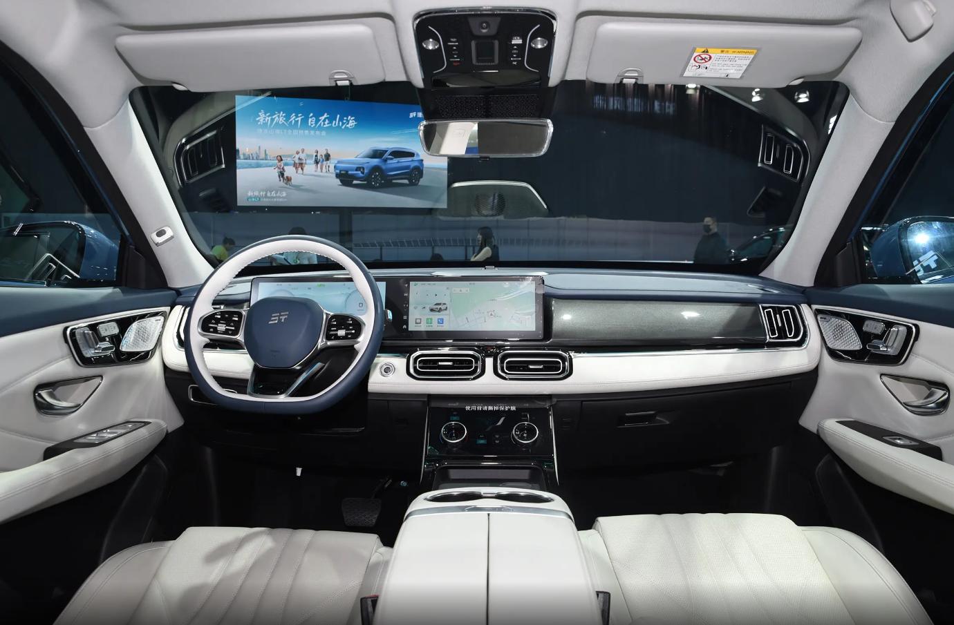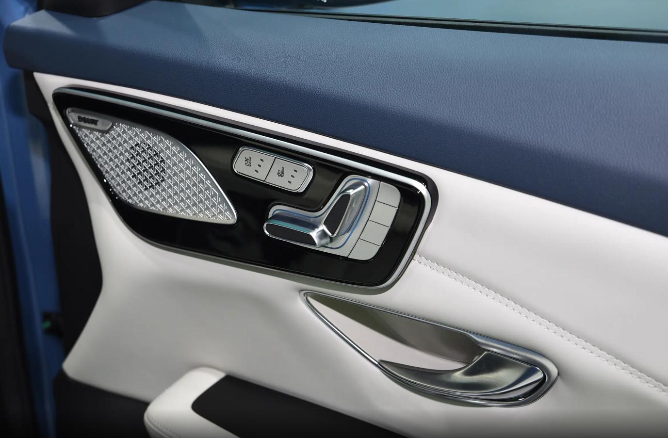 價格上看確實是走親民路線,不過打開車門之后能感受到內飾的整體質感還不錯,尤其是中控臺面上直接采用了貫穿雙大屏,空調控制區域還有單獨的顯示面板,整體科技感并不差。細節上還有比較精致的金屬質感揚聲器蓋板,以及類似奔馳一樣的電動座椅調節按鈕,這些小細節反而提升了整體的檔次。