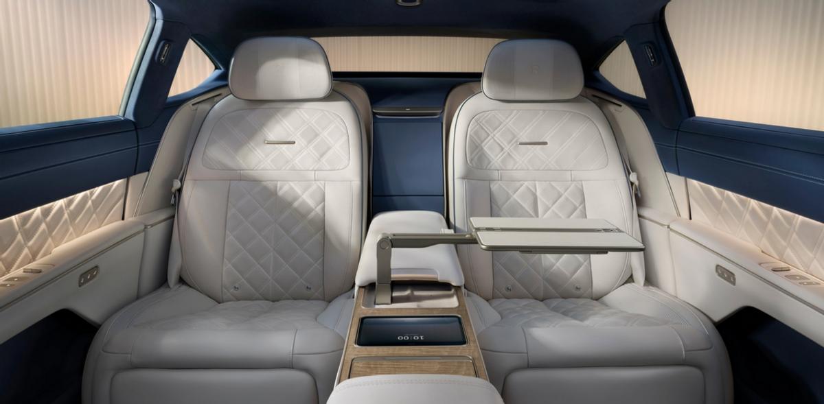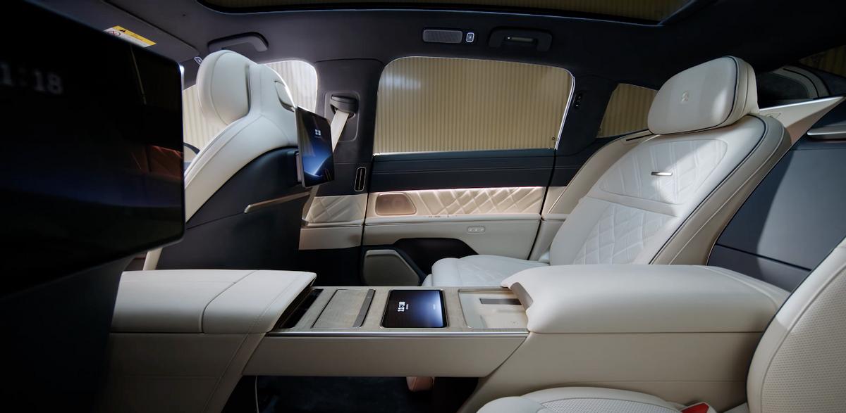 車內采用2+2四座布局,前排座椅支持最多22向電動調節。后排座椅支持最大45度的躺倒角度,以及一鍵“尊享(Boss Key)”模式等等。