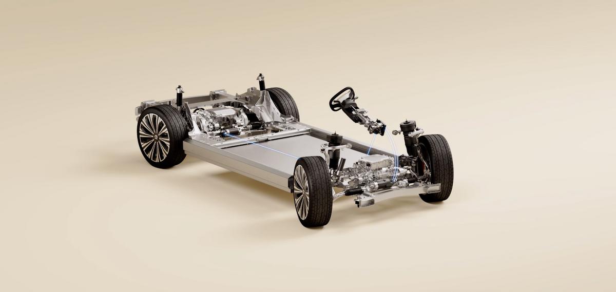 底盤配備了SkyRide·天行懸架系統。主動懸架可進行-50毫米至+40毫米的范圍調節。此外,蔚來ET9還配備天行線控轉向以及后輪轉向技術。