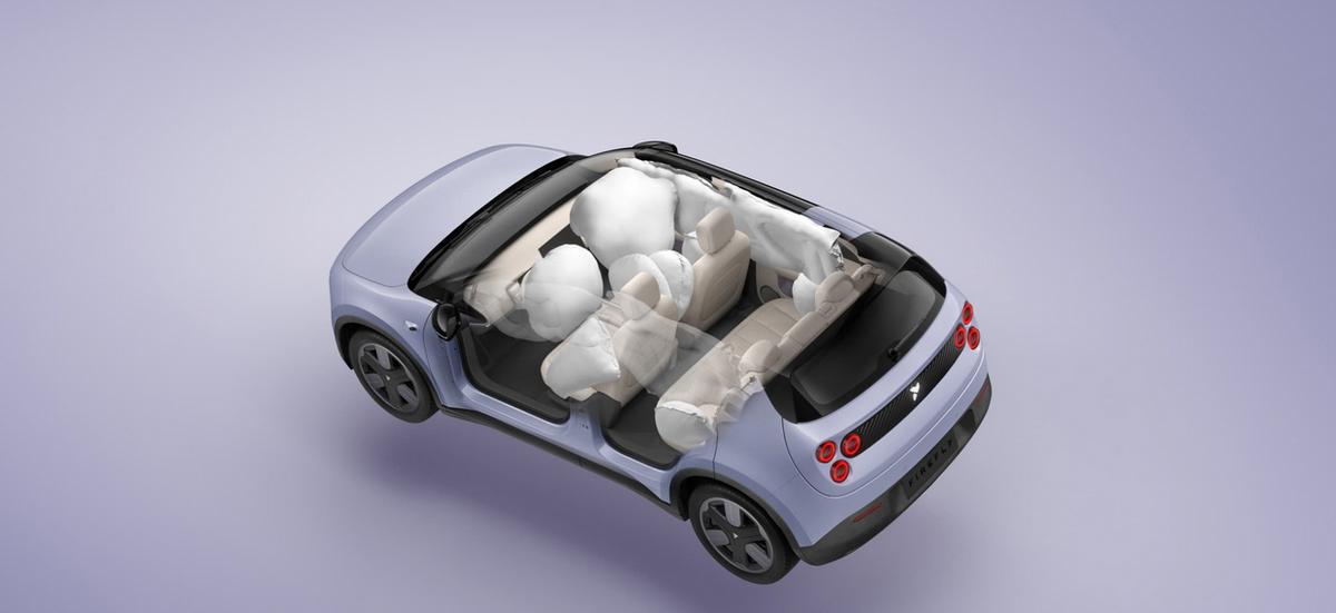 另外,你別看它車小,它采用的高強度鋼與鋁合金使用占比高達83.4%,同時在車身前面、前排車門采用雙重防撞梁,全車配備9個安全氣囊。