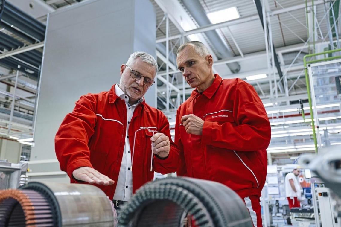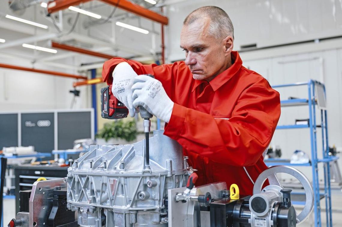 奧迪除了依靠橘色的庫卡機器人精確編排“芭蕾舞”,也還需要人。這些人對工作充滿熱情,而且在這里你會遇到很多這樣的員工。即使是在車間里他們也會用靈活的雙手向客人展示如何將電動機的轉子和定子組裝在一起。以異步電動機(ASM)為例,因為在永磁同步電動機(PMS)中,轉子是永久磁化的,這就增加了工作難度,使其變得復雜;在異步電動機上,我可以更好地使用各種工具。