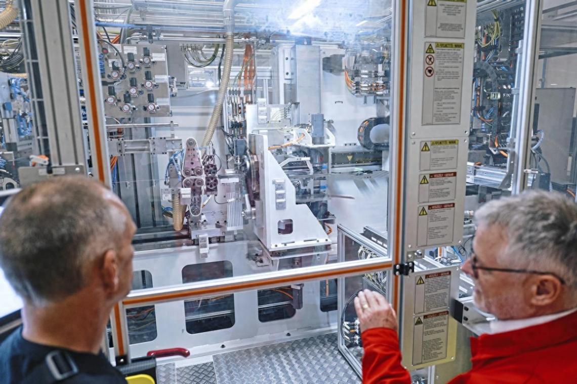 特別迷人的是:激光焊接。每對針腳的焊接周期為150毫秒,速度快到布滕豪斯需要用高速攝影來展示給我看。包括激光如何啟動,精確移動,加熱材料直至形成焊珠,然后以可控的方式冷卻。太酷了!而且,它展示了從微小到宏大的過程,這在某種程度上也很哲學。