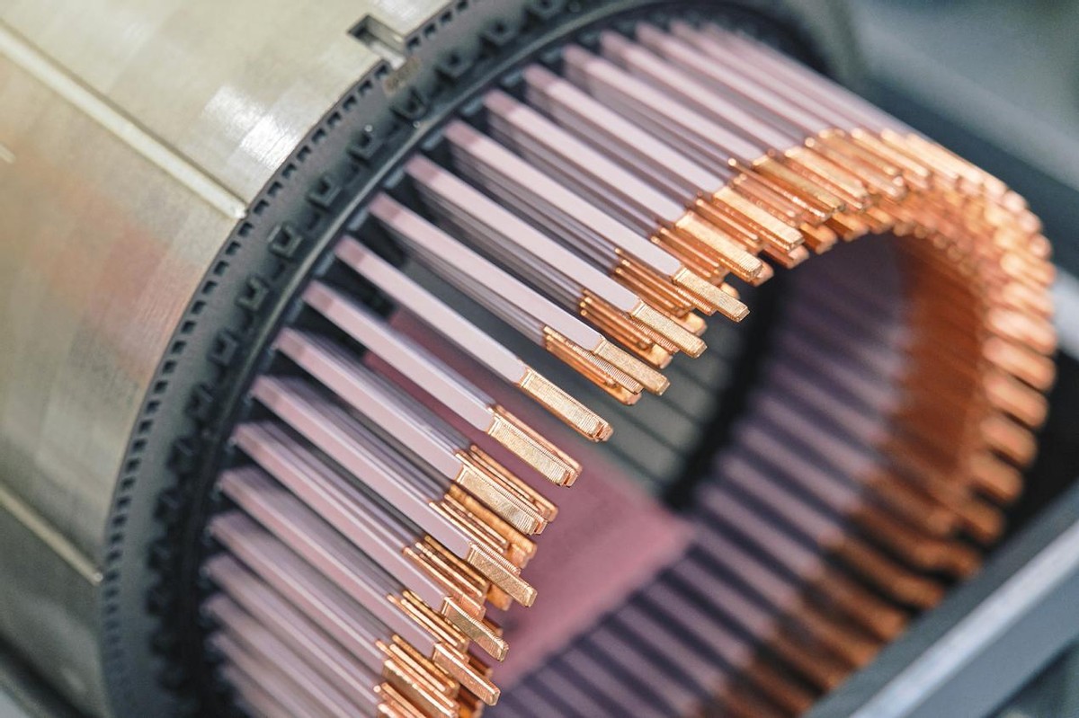 每臺電動機有130個不同的針腳,因為它們在復雜的繞組邏輯中需要對應不同的半徑。最終的目的是實現銅的最佳填充率,但這需要大量的專業知識:剝皮,切割到適當的長度,三維彎曲以及最后的組裝。每個重達38千克的定子需要226個發卡定子、235個焊接點和140米長的銅線。