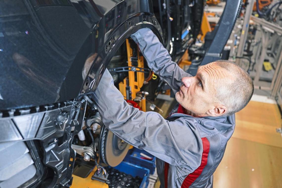 為了確保連接的一致性,部門負責人丹尼爾·納格爾(Daniel Nagel)和他的團隊發明了壓力夾鉗并申請了專利。與人類的手和手指不同,這對鉗子總是以相同的力量夾緊。接下來是更為煩瑣的操作,例如正確地將電纜線束和充電口插到位。你必須準確知道該伸向哪里,每一個操作都需要花時間,直到每一處的完美到位。無論是在這里、在沖壓車間還是噴漆車間,處處都要求盡善盡美。